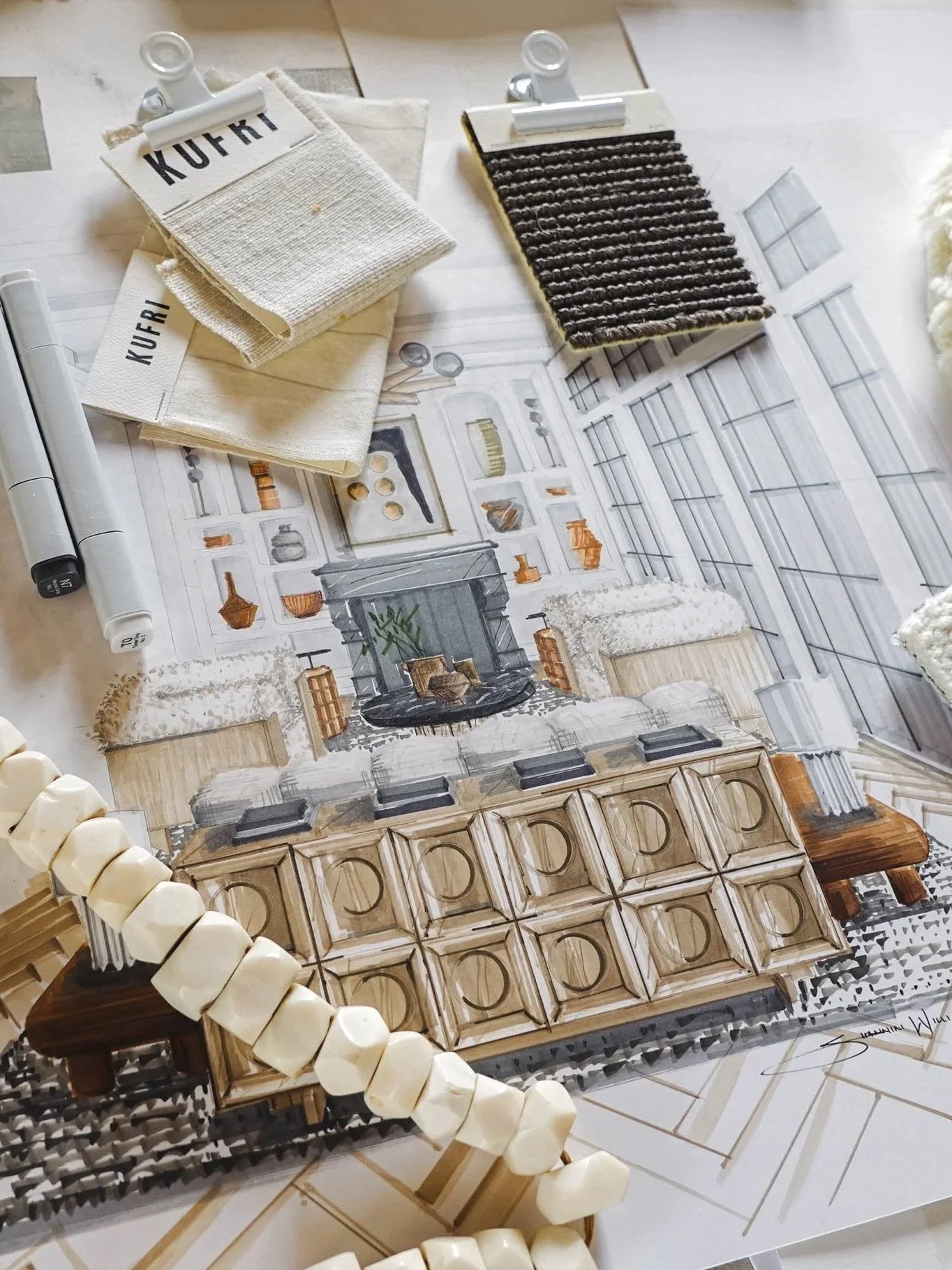 We offer custom hand-rendered architectural illustrations created specifically for interior designers who want visuals that feel warm, expressive, and aligned with the level of work they’re known for. Every drawing is created entirely by hand, no software, nothing generic.